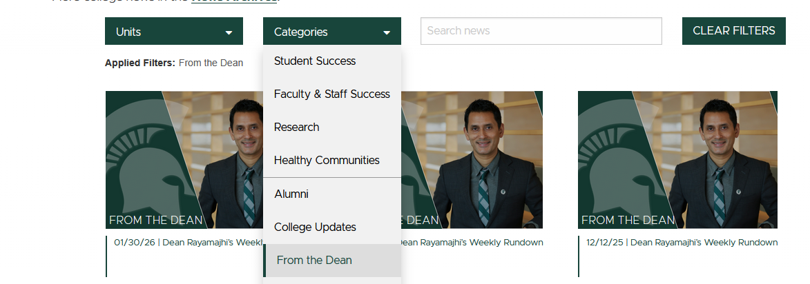 Updates from Dean Rayamajhi are now available on the News Index page by sorting the category to "From the Dean".