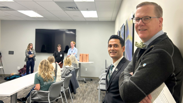The Spartan Bus Tour made a stop in Marquette where we highlighted our Rural Physician Program. Bus tour participants experienced what being a medical student is like from the white coat ceremony to graduation. The group split into smaller groups where instructors walked them through CPR training and how to assist in the birth of a baby. We also touched on the challenges of rural health care and physician shortages. I’m proud of how we train future Spartan MDs to serve patients in rural areas through our COMPASS elective. We know physicians who train in rural areas are more apt to return to and practice in the same or similar communities.
