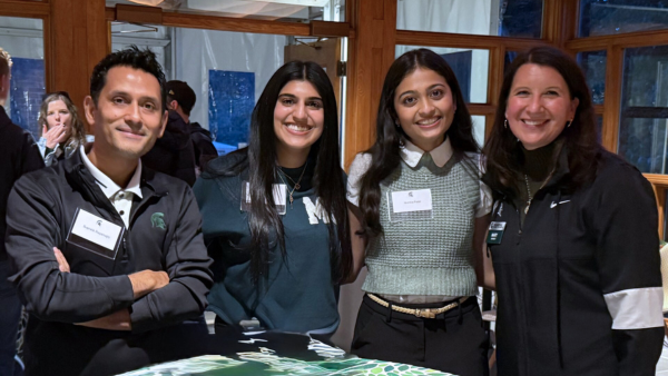 Last Saturday, I attended an MSU-UM football pregame reception at Cowles House along with two of the Dean’s Scholars. I want to thank scholars Nishika Patel (M4) and Esha Elah (M1). Their advocacy work is already in full swing – connecting with donors and legislators to share their unique perspectives as students in the College of Human Medicine. People are more likely to support our future Spartan MDs when they hear directly from them. We were able to meet and thank several of our generous donors. Philanthropy plays a critical role in expanding access to medical education and care and enabling students from diverse backgrounds to pursue training without undue financial burden.