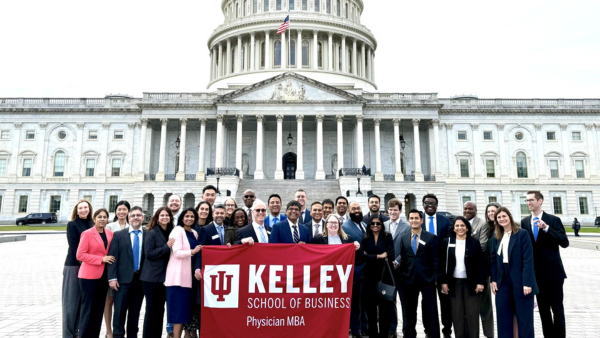 As part of my Physician MBA program through Indiana University Kelley School of Business, I joined fellow colleagues in Washington D.C. to discuss various topics like persuasive and strategic lobbying, and organized advocacy around issues important to our mission. We heard from prior legislators on current topics including visa issues, NIH funding, the Grad PLUS loan cap, projected insolvency of Medicare by 2032, and subpar health outcomes despite the astronomical cost of health care in our country. Among those in attendance were College of Human Medicine alumni Brian Tesler, MD (’14) and Dave Burkhard, MD (’18).