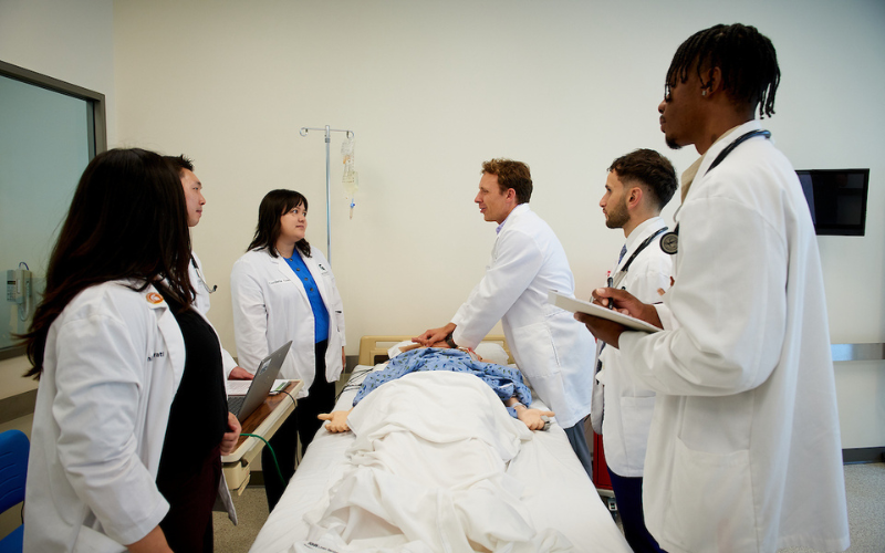 When medical students step into the College’s simulation lab, they often meet “Sim Man,” a high-tech mannequin used to practice clinical skills. But just as vital to their training is a “Sim Woman”—Theresa Helmbrecht, one of the staff members of the College of Human Medicine simulation lab team.